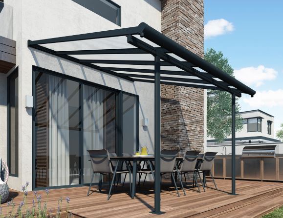 Modern / Minimalista stílus: Jellemzői a letisztult vonalvezetés, a szögletes formák, a rejtett rögzítések. Anyaghasználatban az alumínium és az acél dominál, jellemzően antracit, szürke vagy fehér színben. A fedés gyakran sík, például tömör polikarbonátból vagy nagytáblás üvegből készül.